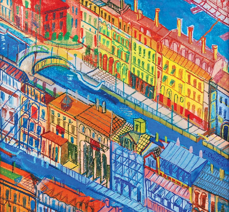 Obraz ukazujący miasto jest przykładem kompozycji otwartej. Przedstawione elementy sprawiają wrażenie, jakby rozciagały się poza płaszczyzną dzieła.Gdyby cały układ został powtórzony w pionie i w poziomie, kompozycja nadal byłaby taka sama